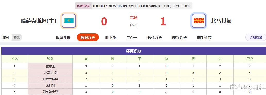 对阵背景:这是1场实力有所差距的比赛,似乎北马其顿的实力要比哈萨克斯坦要强,而且近来表现也不错,只不过还没有强到在客场也能被筹码认定打出的地步,谨慎看好其不败吧。