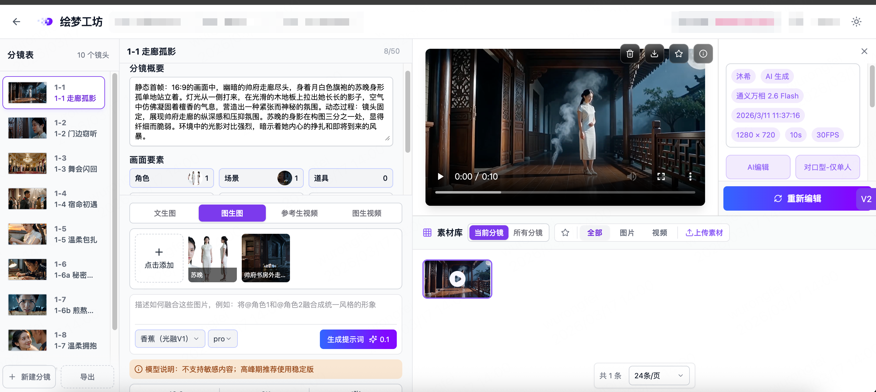在这样的行业趋势下,绘梦工坊的核心用户群体也逐渐清晰——大多是具备实力的内容团队,专门承制精品AI漫剧。这类团队有着自己独到的创作想法,擅长打磨细节、做精细活,始终追求作品的质感与口碑。他们的核心需求也十分明确:既能满足精细创作的高标准,又能保证稳定出片、高效协同,同时实现素材复用,毕竟精品漫剧制作讲究精益求精,创作效率也绝不能拖后腿。