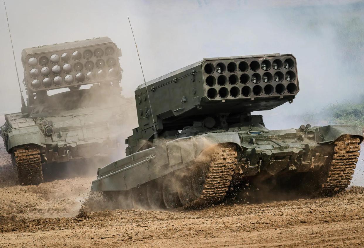 装备迭代针对性强:针对战场反馈,俄军迅速升级了地面压制武器。例如,最新交付的TOS-3A“日炙”重型温压弹发射系统,基于T-80底盘改进,不仅提升了机动性,还专门加装了反无人机护甲和高精度导航系统,解决了旧型号射程短、生存力差的问题,成为攻克坚固筑垒地域的利器。