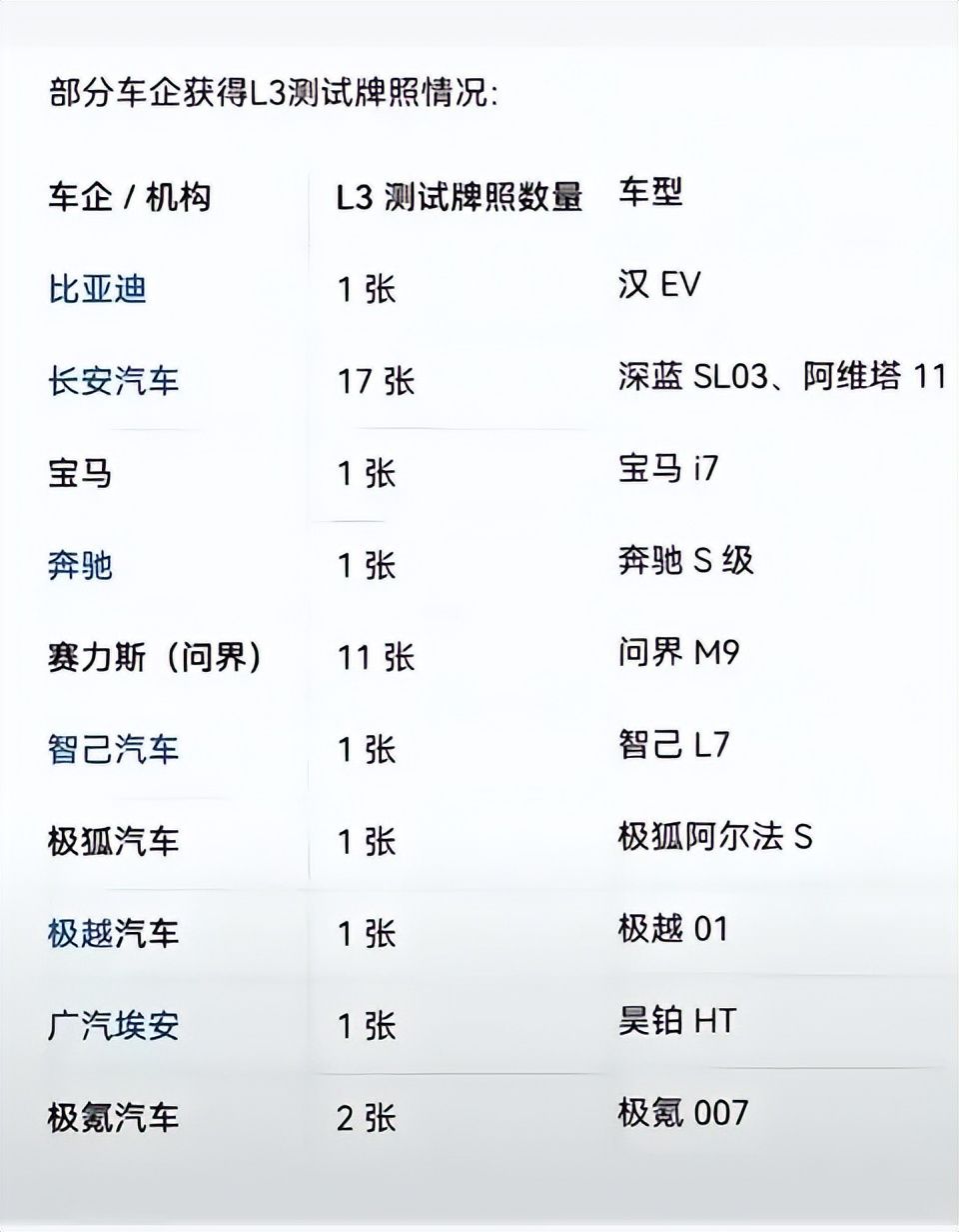 2025年7月,首批L3级自动驾驶准入车型及测试牌照名单正式公布,标志着国内智能驾驶从“测试”向“合规落地”迈出关键一步。这份名单涵盖中外10余家车企、20余款车型,包括长安、赛力斯(问界)、比亚迪、北汽、广汽、东风、上汽、吉利、宝马、奔驰。