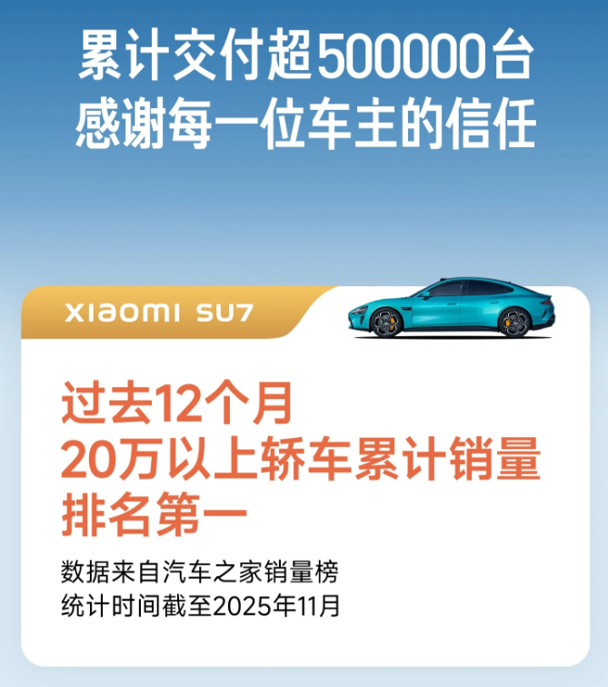 近日,小米汽车宣称12月单月交付量首次突破5万台,全年累计交付超41万辆,创下品牌历史新高。截至11月,其累计交付量已达50万台,从首款车型交付到实现这一规模仅用20个月,刷新全球新能源车企最快纪录。同时,小米推出YU7车型3年0息购车优惠,首付7.49万元起,进一步刺激消费。 网友惊叹“跨界造车也能弯道超车”。小米凭借高性价比和产能爬坡速度,成功跻身新势力第一梯队。但对比鸿蒙智行单月8.9万台的交付量,也暴露出与传统车企的差距。专家指出,新能源市场竞争白热化,持续创新和交付能力将成为关键胜负手。大家怎么看小米汽车取得的成绩,欢迎评论区留言讨论。