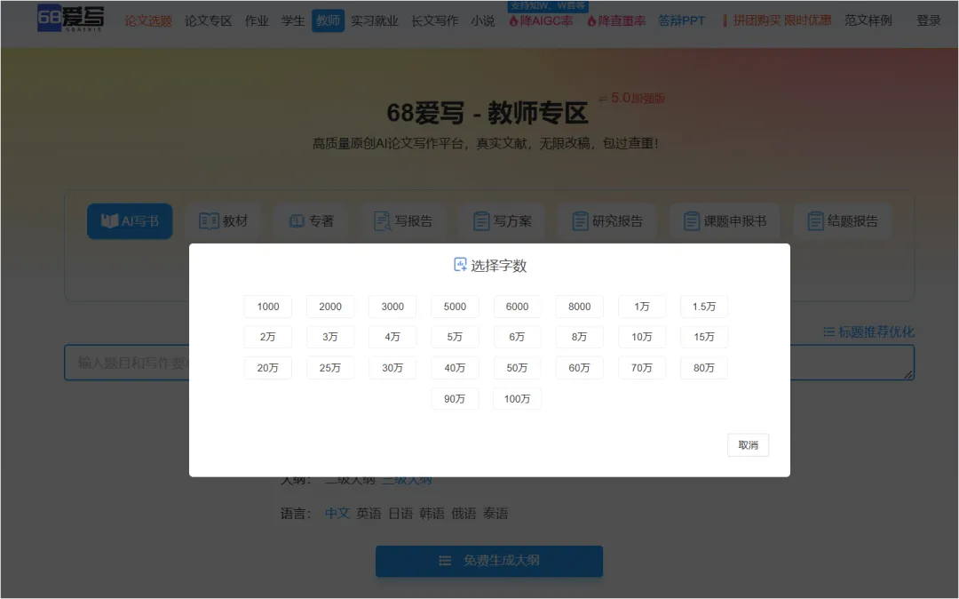 68爱写AI是目前我心里的全能标杆。它不仅整合AI5.0和Deepseek-r1学术增强模型,更在AI专著教材写作领域,实现从逻辑构思到财务报销,全链路覆盖。