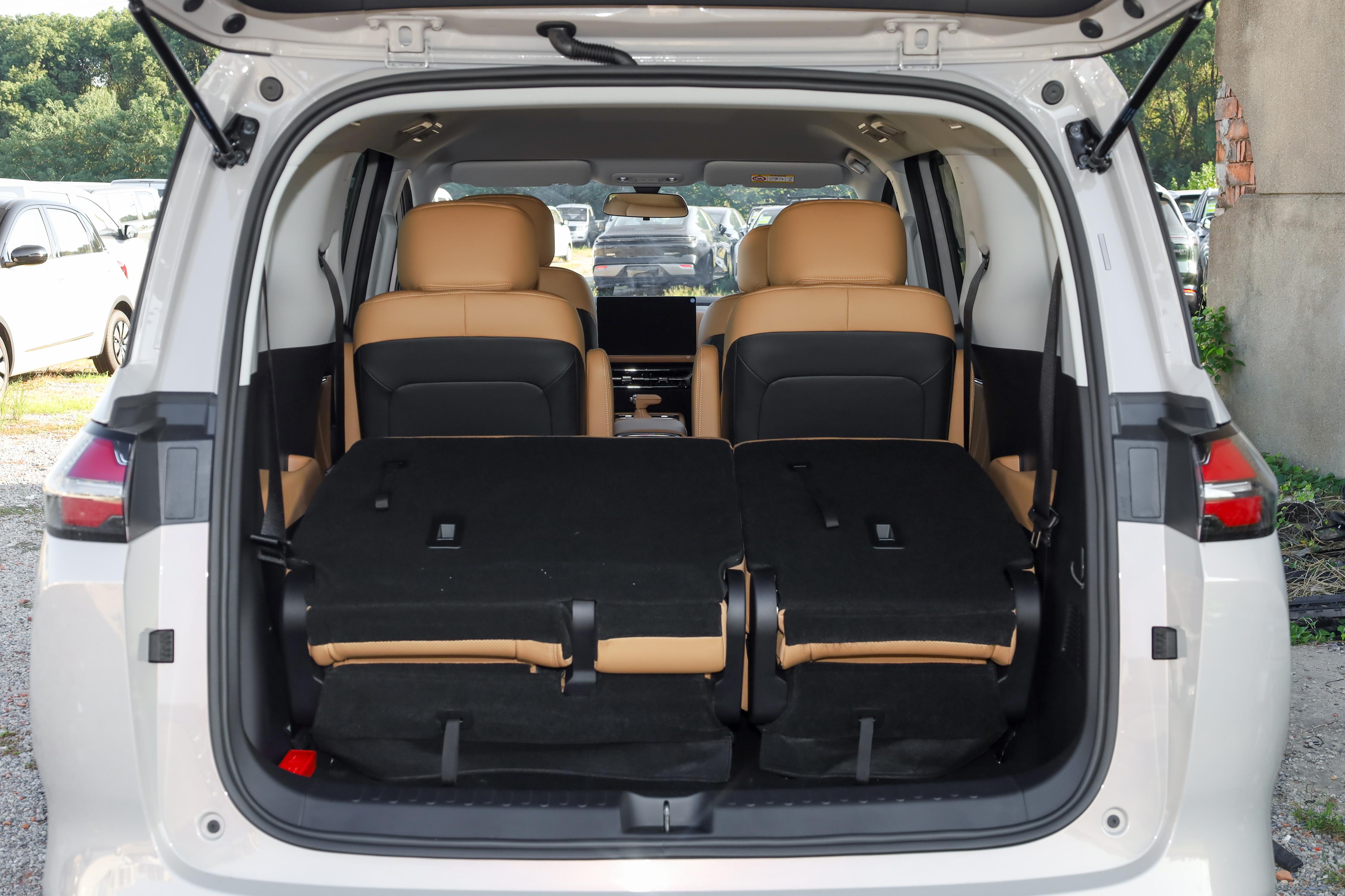纯电版更偏商用,我试了几天城乡接客场景。续航500km,市区跑单轻松200km起步,快充20分钟够用,百公里13.6kWh,成本低到忽略不计。想象下饭店老板用它接送客人:宽敞空间放两张折叠椅,后备厢塞菜单和食材,电动门一开,客人上车稳当;或者摄影团队拉设备,第三排翻折后箱子平整,续航够一天外拍不充电。实际开着,电机100kW推重比好,起步快,超车不虚。缺点是长途得规划充电,但对城际短途或固定路线,纯电的零排放和低噪绝对加分。跟燃油版比,它更环保,商用场景下维护简单,不用换机油。