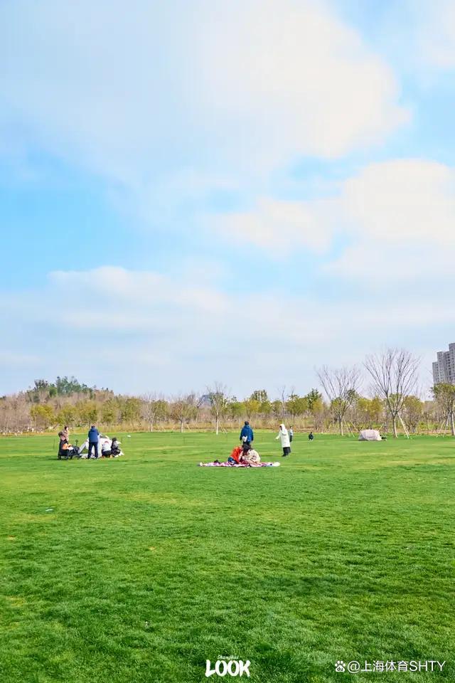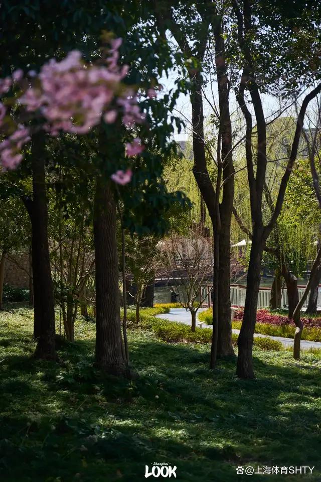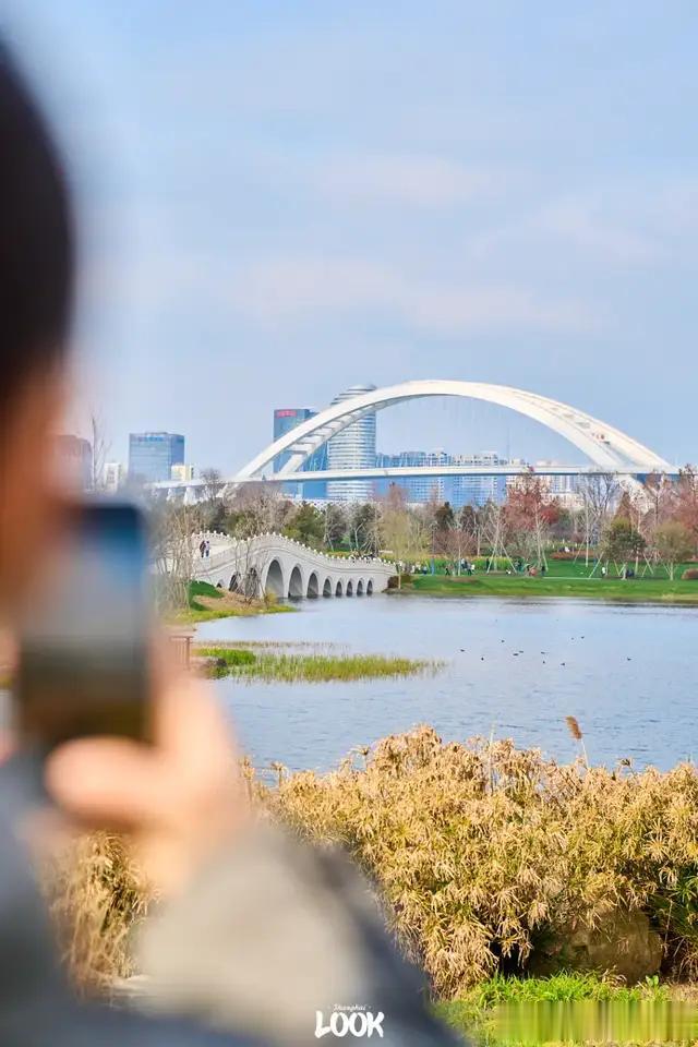 新江湾公园自2024年升级后,整个公园的清新春色和城市融为一体,在远处还未入园的时候,就看到了这一抹春意盎然。