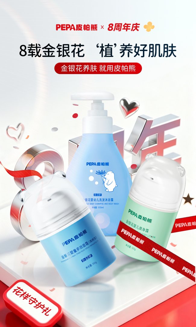 2026 年作为金银花婴童护肤品牌开创者—— PEPA 皮帕熊金银花婴童多效面霜 连续 5 年销量夺冠,也迎来品牌 8 周年庆典。