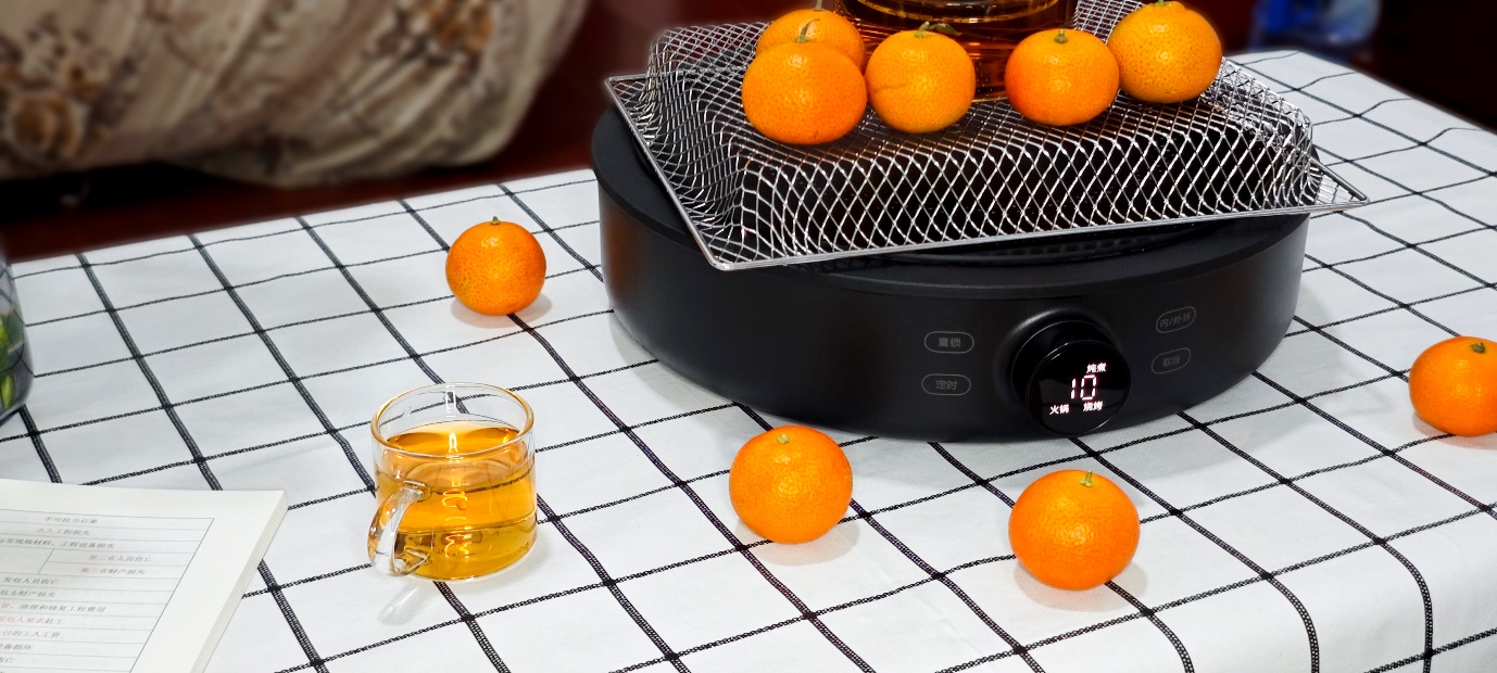 得益于电陶炉的发热模式,可以模拟碳火烘烤,选择“烧烤”菜单,搭配烤网可以对水果、干果、红薯进行烤制;搭配烤盘则可以进行烤肉、烤鱼或煎蛋等烹饪操作,多种烹饪方式任你你选择,让你在家就能实现烧烤自由。