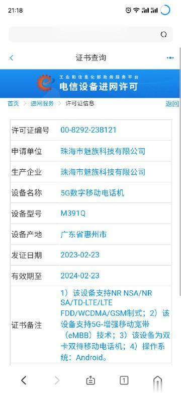 魅族 20 系列两款新机正式通过工信部入网许可,入网日期 2 月 23日。