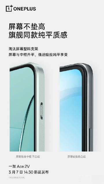 官方表示,在质感和成本之间,一加Ace 2V选择坚决淘汰掉屏幕塑料支架,将旗舰质感普及到底!据悉,淘汰屏幕塑料支架后对质感的提升是显而易见的。第一,正面极窄边框,没有大黑边;第二,侧面一体性更强,没有千层饼;第三,屏幕与边框齐平没有突兀感。