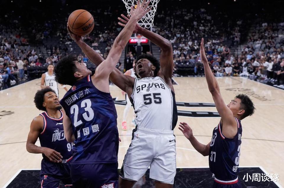 今年夏天广州龙狮队应邀参加NBA季前赛,10月7日广州龙狮队首战对阵圣安东尼奥马刺队,这场比赛广州队虽然以88-119不敌马刺队,但是小将陈国豪拿到了14分3篮板的数据,其中第三节单节拿到10分,在攻防两端的表现都可圈可点。另外广州龙狮队的李祥波、管子煜、刘颜诚、彰华非等国内球员都有得分进账;看到陈国豪高效的拿到14分,对比在国内热身赛表现不佳的焦泊乔,不知道广东队和朱芳雨有没有后悔。