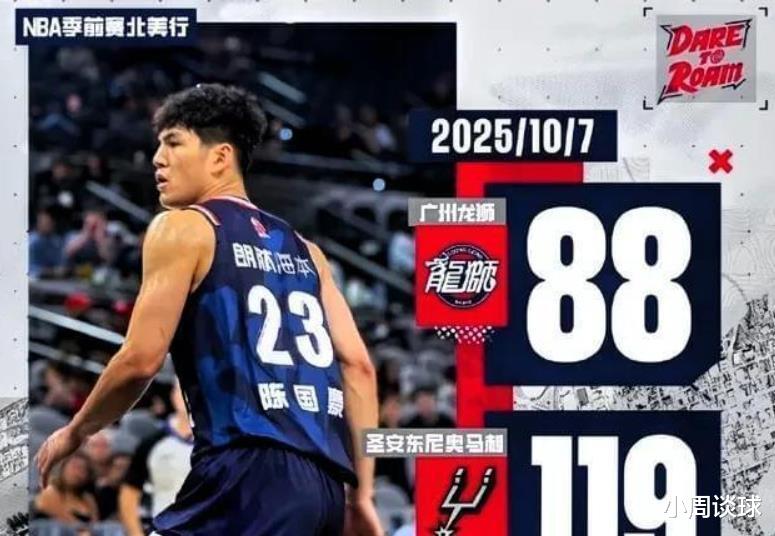 今年夏天广州龙狮队应邀参加NBA季前赛,10月7日广州龙狮队首战对阵圣安东尼奥马刺队,这场比赛广州队虽然以88-119不