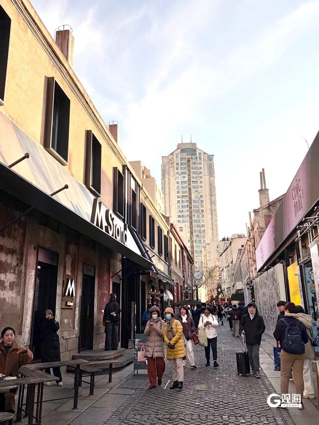 寒冷挡不住人们的热情。冬日斜阳穿过百年里院的红砖拱廊,在石头路上投下错落光影,潮牌聚集的银鱼巷,正以独特的“网红”魅力吸引一批批年轻身影驻足。
