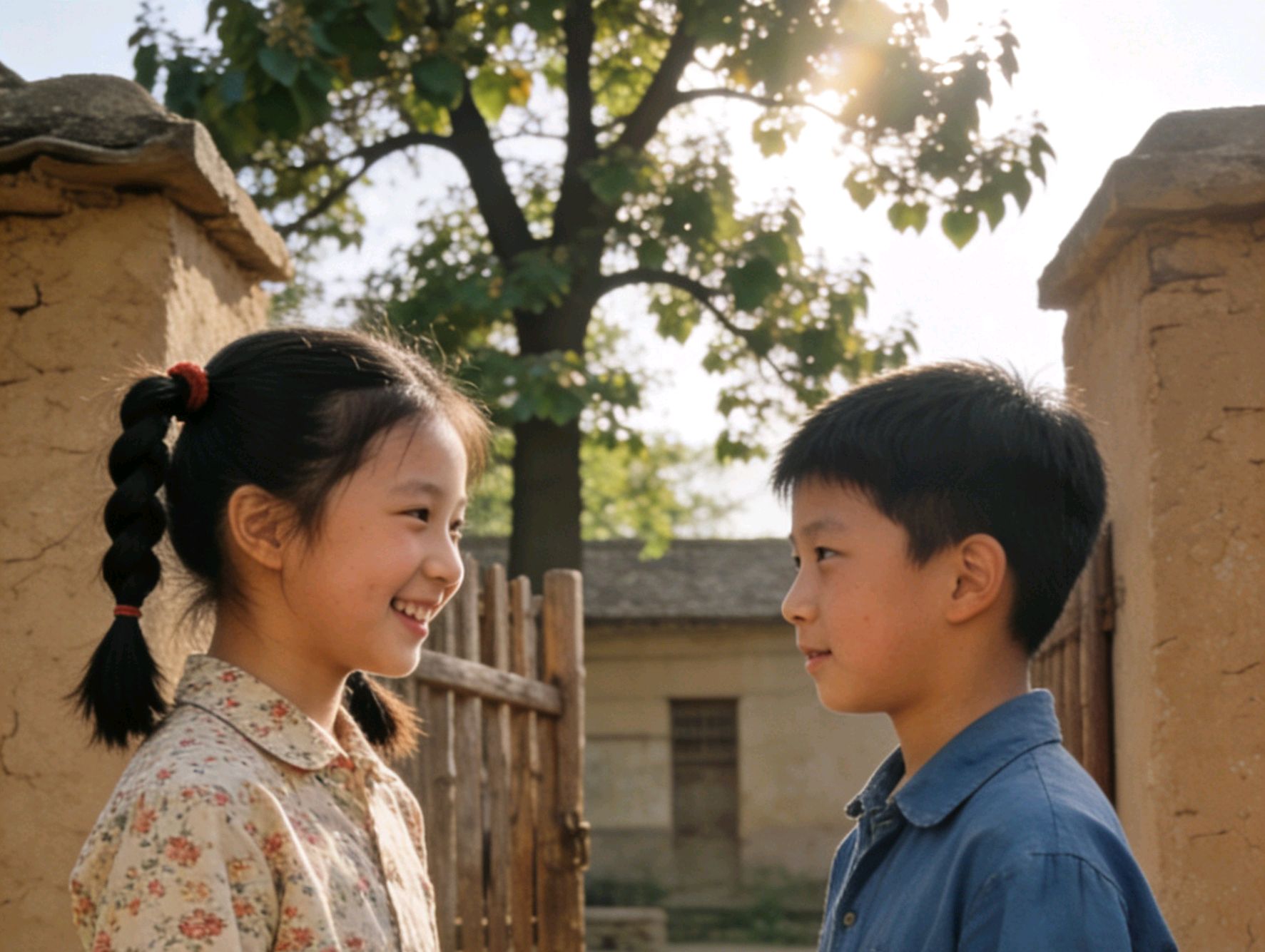 那时候是一九六几年,农村的小学就一间土坯房,一个老师教十几个孩子,外公和外婆坐在同一张课桌前。外婆家里穷,买不起书包,每天用一块蓝布包着书本,外公家里条件稍好一点,有一个帆布书包,他总是把自己的铅笔、橡皮分给外婆一半。每天放学,外婆都会收拾好书本,转过头,对着外公笑盈盈地说:“建国,放学了,我们一起回家吧。”