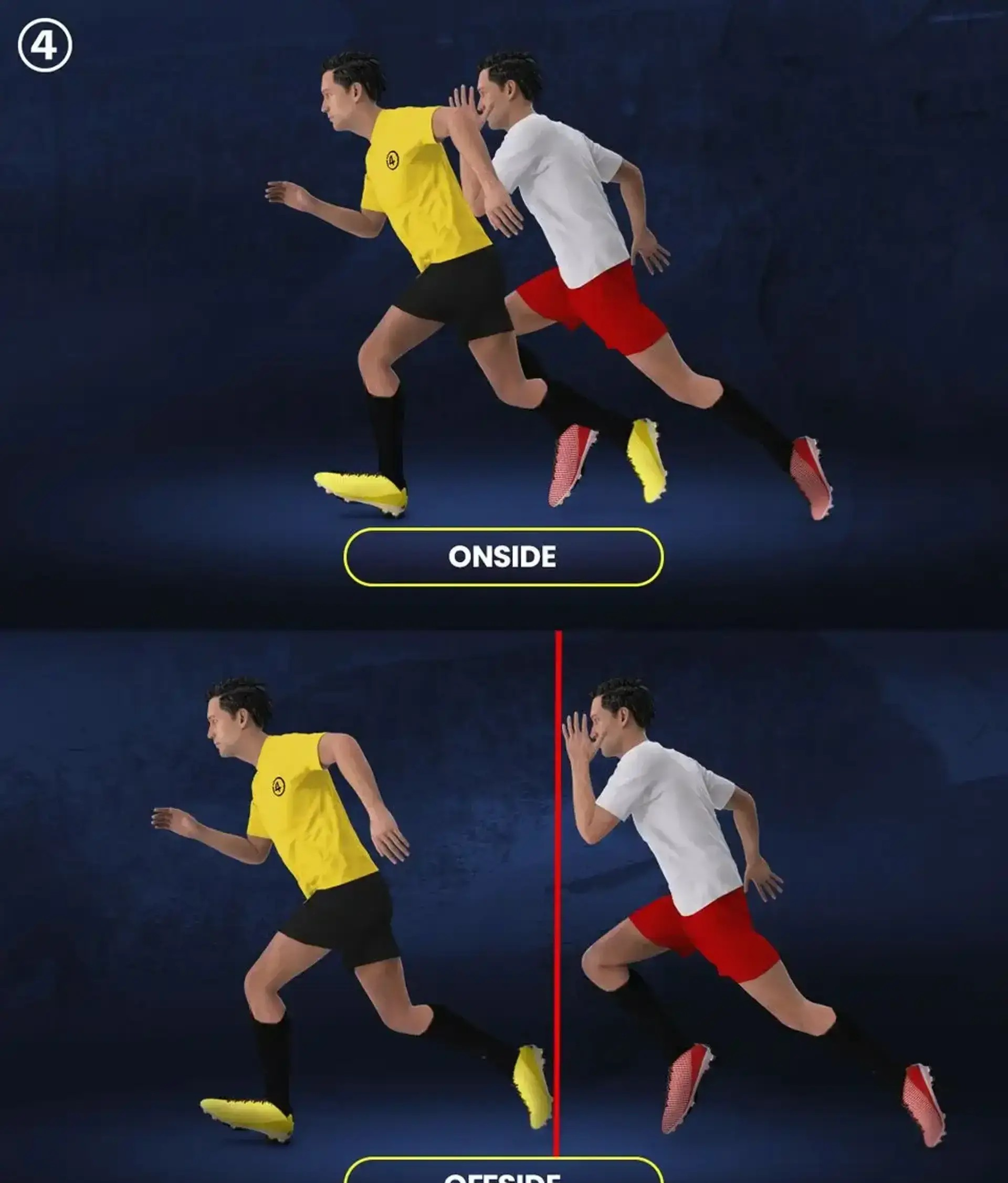 即使进攻球员只有身体的一小部分与防守者保持平线,也不会被判定越位,越位线将明确划在球员身体之间。