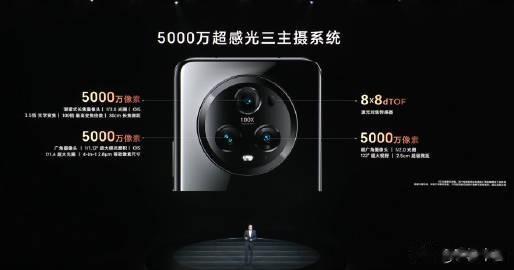 后置 5000万像素主摄 1/1.12" CMOS传感器(支持 OIS 光学防抖)+ 5000万像素 超广角 + 5000万像素 潜望式长焦(100 倍,支持 OIS 光学防抖)