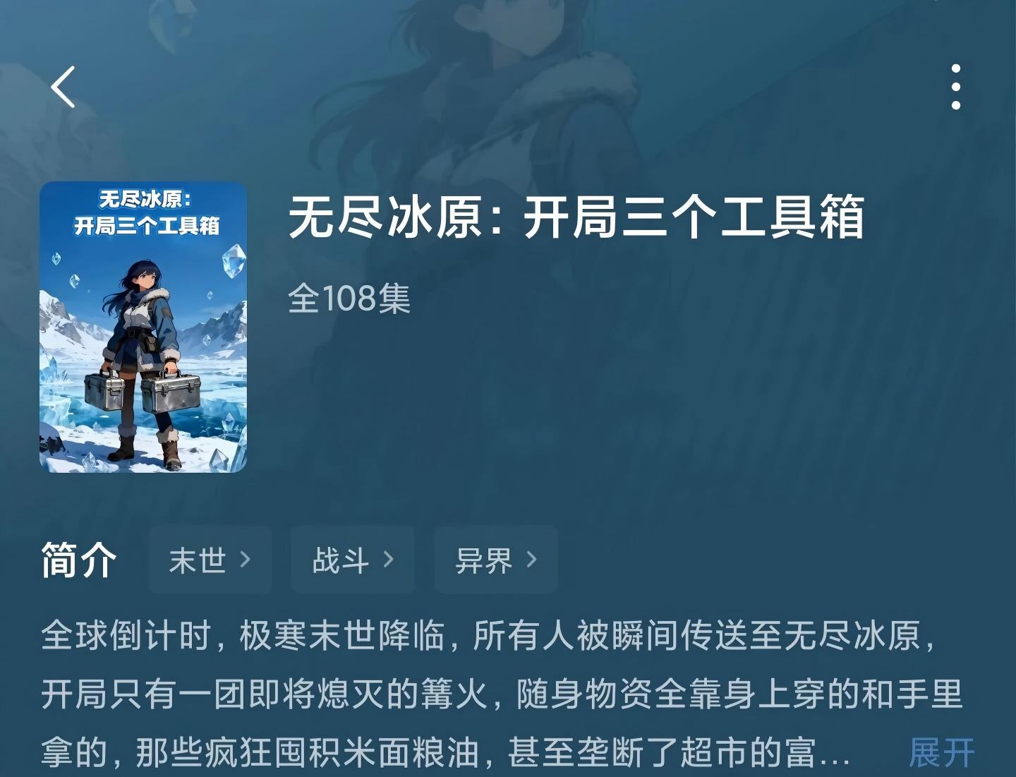 主角穿越到游戏世界里,靠着自己的优势成为拯救世界的人。去年9月全球收入超过37亿的热门手游《无尽冬日》,红果上就有一部根据这个游戏背景做的漫剧《无尽冰原·开局三个工具箱》。