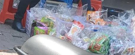 中午我到校门口一看,几家文具店门口,摆着几大筐那种包装简陋的辣条,看起来分量多,价格基本是五毛一块钱。老板直接坐在旁边收钱。