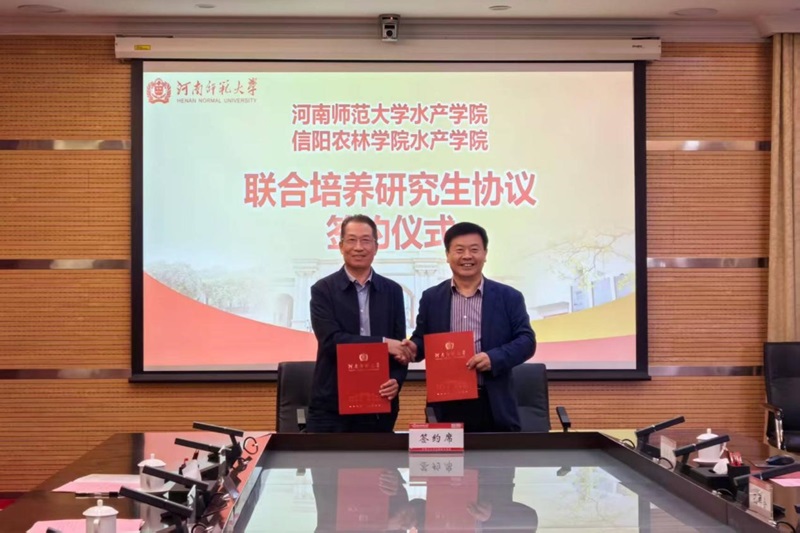 签约仪式上,信阳农林学院水产学院院长郭旭升和河南师范大学水产学院院长孔祥会分别代表双方签署了联合培养协议书。双方围绕“研究生联合培养机制创新”“学科建设协同发展”“产学研深度融合路径”等方面进行了深入的交流。