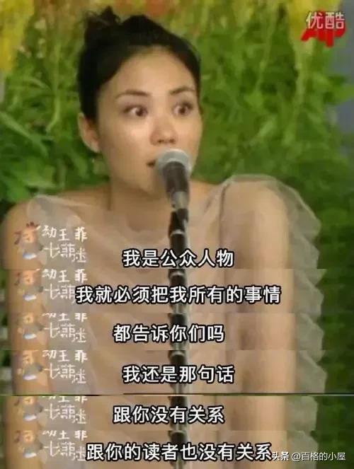 王菲有一次被采访时问道:“你有什么非常烦恼的事情吗?”而王菲也是淡淡地回了一句:“没有,我最不喜欢麻烦了,如果非要有的话,那就是我太红了。” 其实不是王菲太狂,而是她有说这话的资本,看她的简历——华语流行乐女歌手、演员中国国家一级演员、金马奖影后、金像奖影后,曾在福布斯名人榜位居第四…… 另外,她的家境也给与了她如此的支撑,王菲的祖父王墨林(亦称王兆民)毕业于北京大学国文系,20世纪40年代担任过立法委员。王菲的父亲王佑林是位煤炭工程师,母亲夏桂影是煤矿文工团的女高音。 所有,在很多事上,王菲的态度都是冷酷、直来直去,她不会为什么改变自己的原则。 一次,王菲参加某项活动,穿的衣服十分暴露性感。在一旁的古巨基好心提醒道:“菲姐,你的衣服是挺好看的,但是就是过于漏了。” 谁知王菲听完后,直接说了一句:“关你什么事,我想怎么穿就怎么穿,这是我的事。” 怼记者,王菲也是第一人! 一次采访,记者问:“作为你的观众和粉丝,也想知道你的恋情。” 王菲怼道:“与他们又有什么关系?” 记者发飙:“你是公众人物啊!” 王菲又怼回去:“作为公众人物就应该把自己的所有都告诉你们吗?” 有人说,王菲这个个性,从来没有卖弄人设,全凭实力圈粉。 她似乎一直都是这样,并非是针对某一个人,她的性格不管是对谁还是什么场合,始终如此! 她总是云淡风轻,把什么事都看得清楚明白,有人觉得她任性,却不知这才是实力的支撑。 因为有实力,家庭也可以,所以在面对任何事的时候才能做到不亏欠自己。 还记得有主持人问王菲:“你有没有想过,给女儿找个理想父亲?” 王菲十分不解:“我从未想过要给她找一个理想父亲,我将来找伴侣的话也是找我的伴侣,她有她的父亲啊,就算找伴侣,也是看我喜不喜欢!” 把自己放在第一位,这才是真正的洒脱与追求自由!