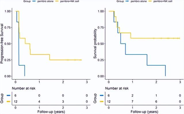 该试验共纳入20例患者,结果显示:接受SNK01联合帕博利珠单抗的患者2年生存率(OS)为58.3%,而帕博利珠单药治疗的2年生存率(OS)为16.7%。