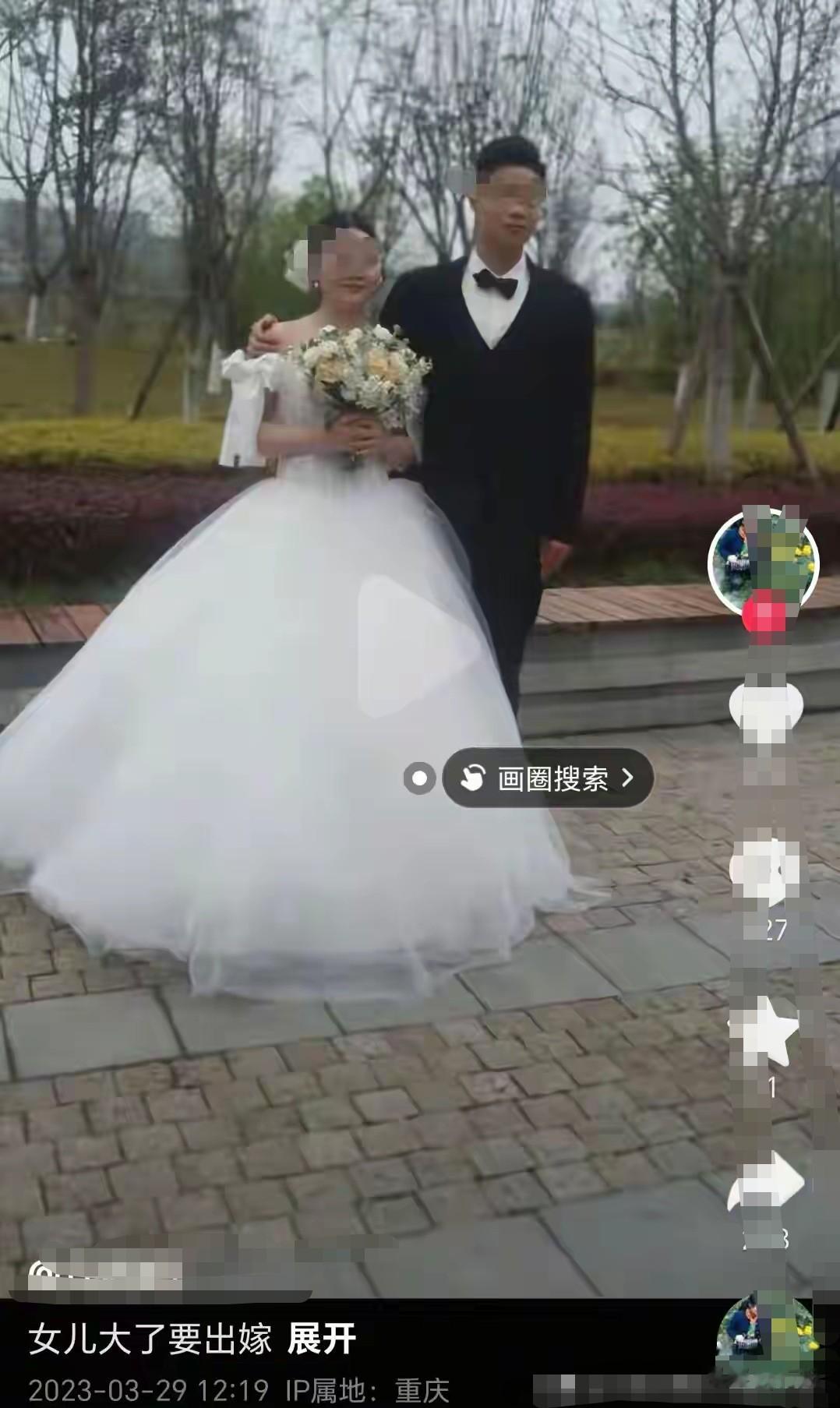 视频的开头是女儿穿着嫁衣,笑容灿烂出嫁的样子。新娘子长得真的很漂亮,脸上充满了对未来的各种幻想,没想到仅仅两年的时间,她就离开了人间。