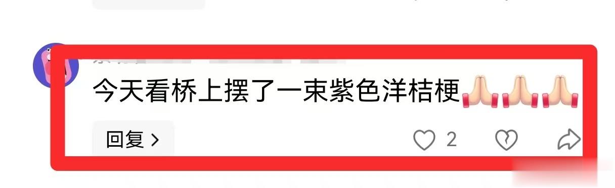 有当地网友透露,今天桥上多了摆了一束紫色的洋桔梗。
