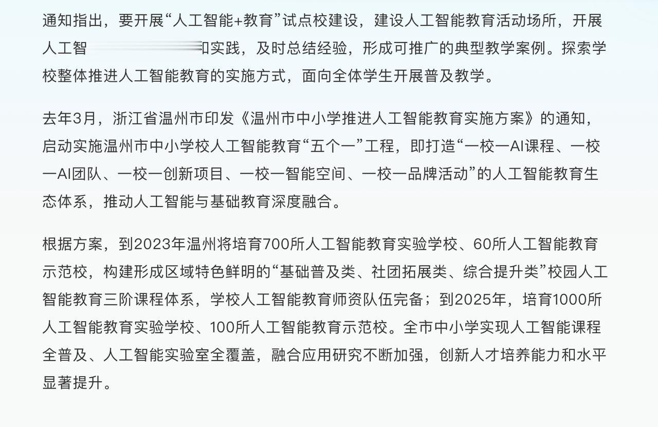 千万不要低估了浙江,上海人的危机感或许都没浙江人强!刚刚落幕的2023数字教育大会上,浙江宣布,大篇幅融入科学数学课。据官方称,信息技术已成为浙江省一门高考学科,中小学引入人工智能课程,将有利于学生打好基础。其中尤其值得称赞的是,浙江大学的计算机学科一直走在全国前列,计算机学科与传统文科、医科、商科等学科的交叉融合在日常教学中已非常普遍。 这场自上而下的教育改革,凸显了浙江教育职能部门对全球信息技术变革的前瞻性和敏锐度,微软ChatGPT的诞生对全球教育尤其是以应试模式为主的中国教育所带来的冲击是难以想象的,教育行业专家对此的普遍性观点有两个,一个是创新性教育更为重要了,另一个是如何提问是下一代教育中的关键。 教育关乎未来的发展,从整个浙江经济的现状和未来发展来说,今天迈出的一小步,很有可能在10年后、20年后给整个浙江带来质的腾飞。北欧教育源源不断诞生全球最顶尖的程序员,就是一个非常好的例子。过去几十年来,民营企业一直是浙江经济的底座,但伴随着低端制造业的外流,宁波舟山外贸行业面临着前所未有的危机,外加国内整个互联网行业见顶,能真正给浙江带来活力的产业实际上并不多。 所以,从教育入手押注信息技术赛道,不难看出浙江主政者的用心良苦。为浙江点赞。