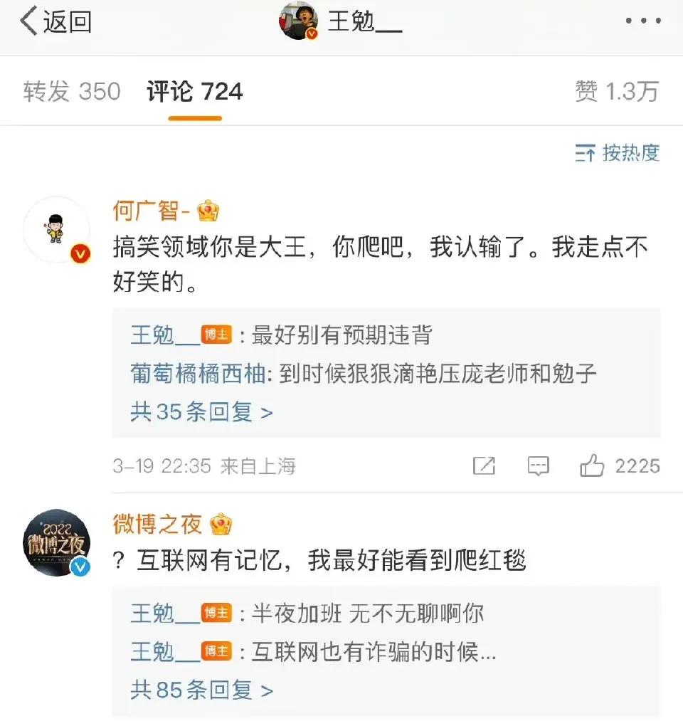 李诞你该管管你家员工了! 之前的大悲中悲超大悲,难道李诞没听到网友们的心声?当时真是引起了不小的动静,网友们纷纷喊话李诞,赶紧给你司员工培训下怎么走红毯! 后来李诞给何广智安排了走红毯培训! 话说培训过的就是不一样,何广智表现的也很淡定,更有网友表示还有周杰伦的范! 现在王勉又要走红毯了,竟然准备去爬红毯,李诞你也不管管,作为老板你是不是该说句话,看把你的员工难为的[尬笑],赶紧给员工们都培训一下! 不过,是不是李诞故意不培训呢,脱口秀演员一出场就是笑点,这才符合他们的定位! 别样的红毯会不会还有点小期待呢[憨笑]?