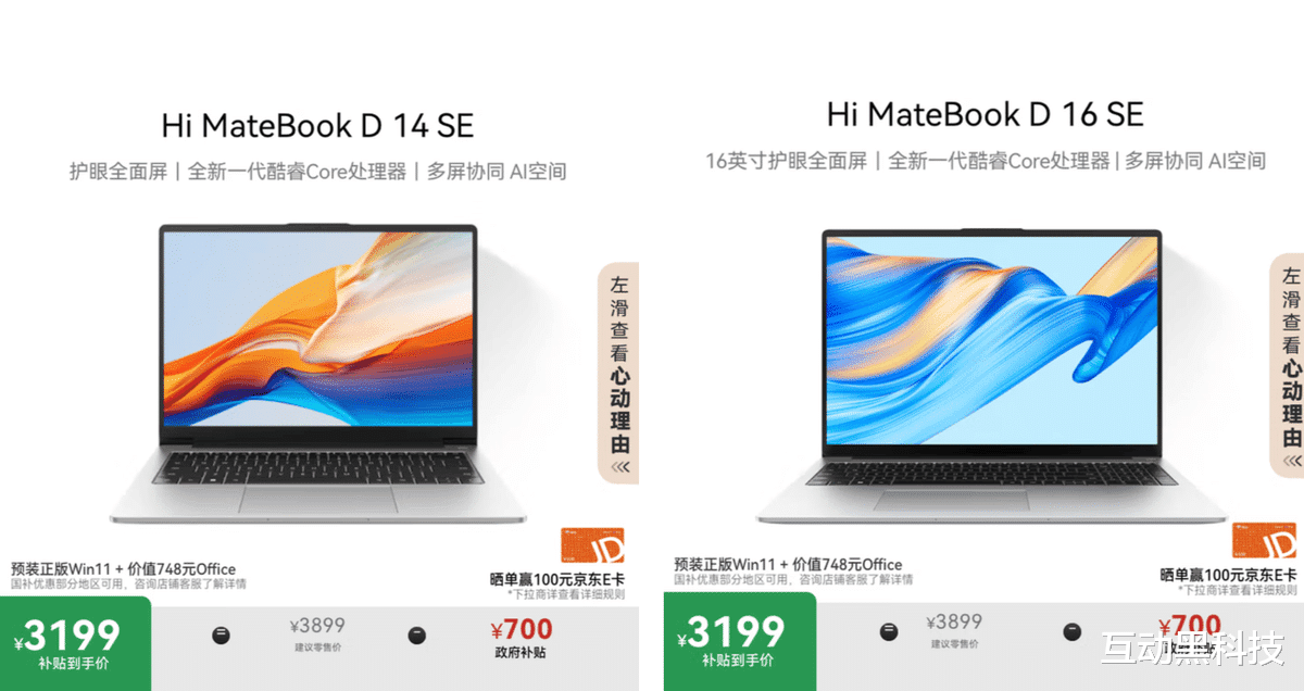 别急,今天就给大家奉上两款3K价位段的宝藏笔记本——近期上线京东平台的WIKO Hi MateBook D 16 SE和D 14 SE,在国补和平台补贴的双重Buff加持下,京东平台价格直接杀到了3199元,属实是抄底价了!关键是,它继承了上半年口碑爆棚的Hi MateBook D16/D14的核心优势。要知道,单单Hi MateBook D16在京东的好评量就超2万条,好评率近乎100%。