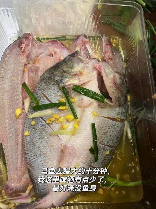 方法如下:市场买回来的鱼处理好之后,加入葱、姜、盐、啤酒进行去腥,差不多10分钟左右即可。