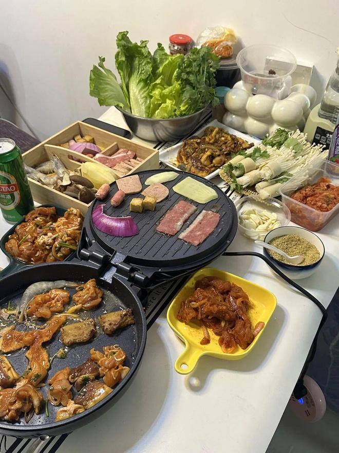 既然可以用电饼铛烤鱼,自然也可以用来烤肉了,只要准备好相应的食材,绝对能吃到爽吃到撑。