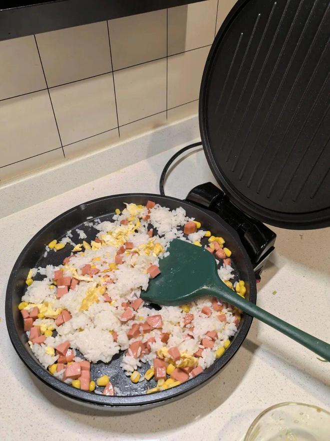 电饼铛的本质,就是一口可以上下同时加热的锅,所以只要想通了这一点,完全可以用来炒菜炒饭,而且还不会糊。