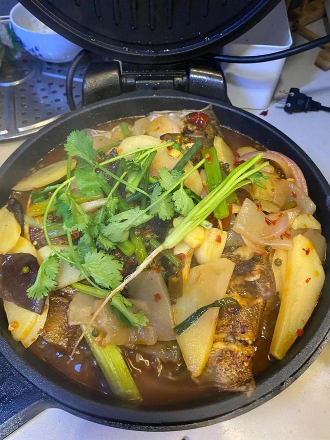 自己在家烤鱼,一般得用电炖锅煮着吃才香;如果没有的话,也别去买了,用电饼铛就可以平替。