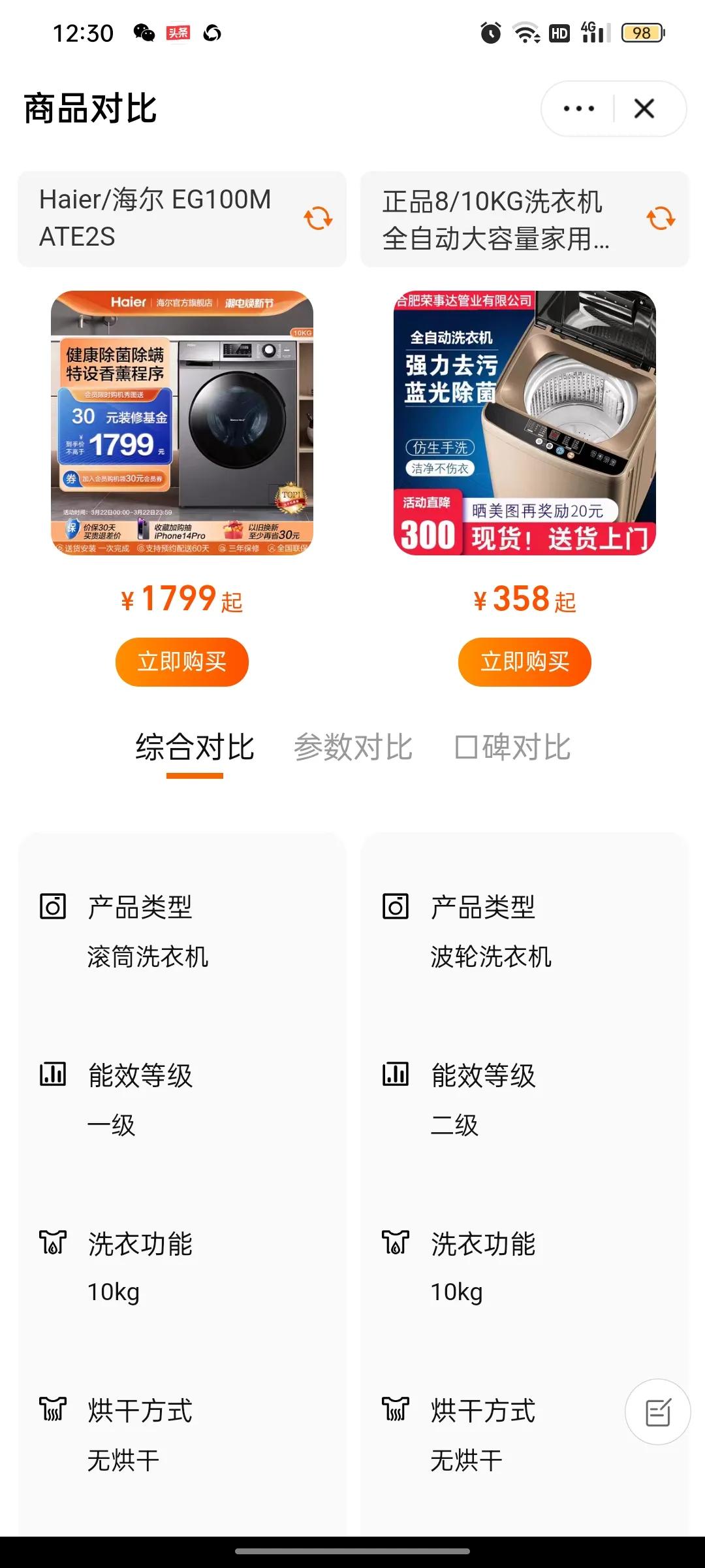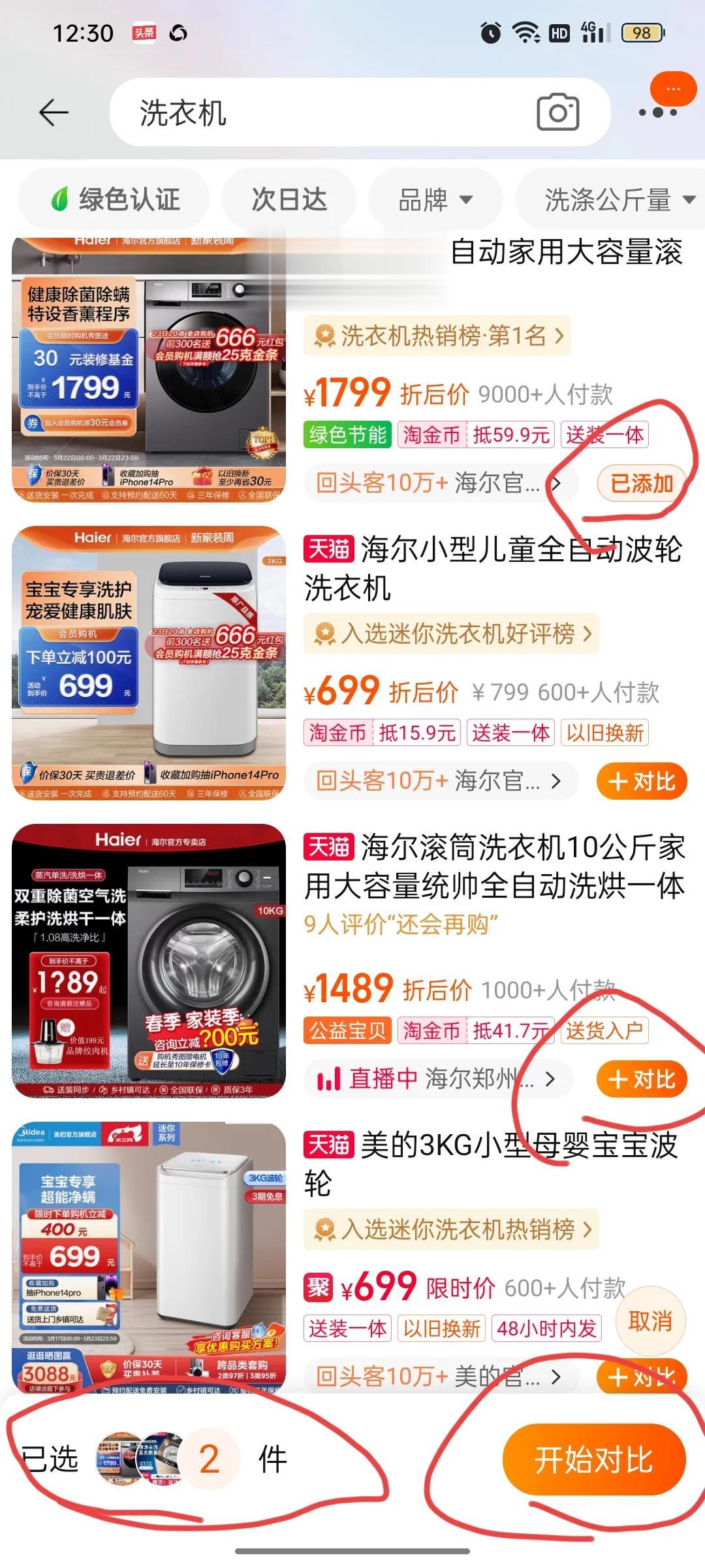 家里要换洗衣机,我像平常一样到淘.宝搜索,挑选了好几款,出现了很惊喜的画面,居然可以比价。