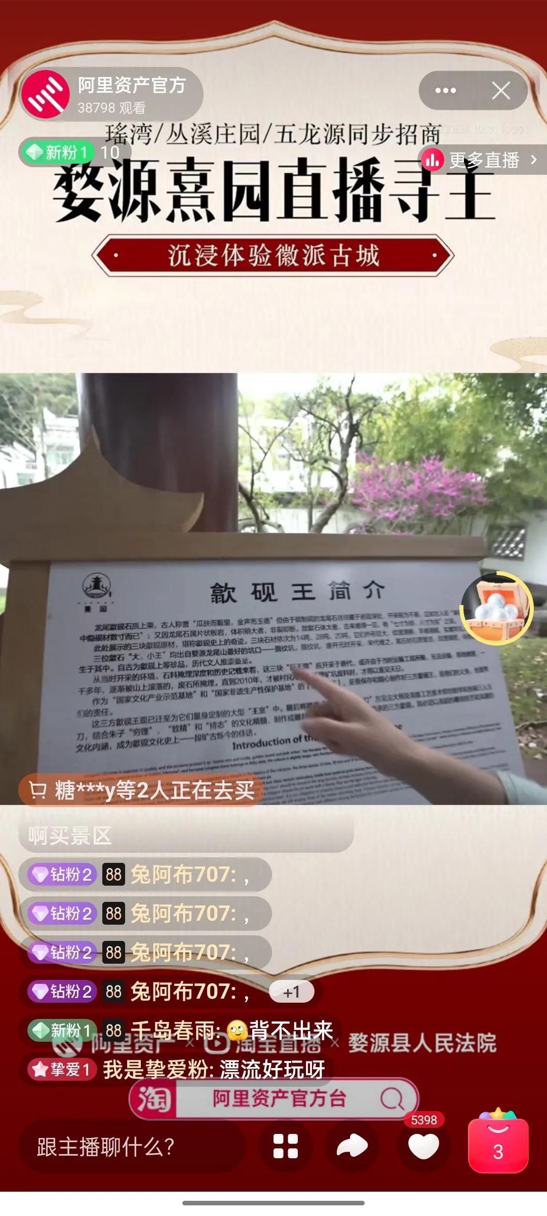 阿里资产和当地人民法院共同进行的,现场会展示徽派的熹园。