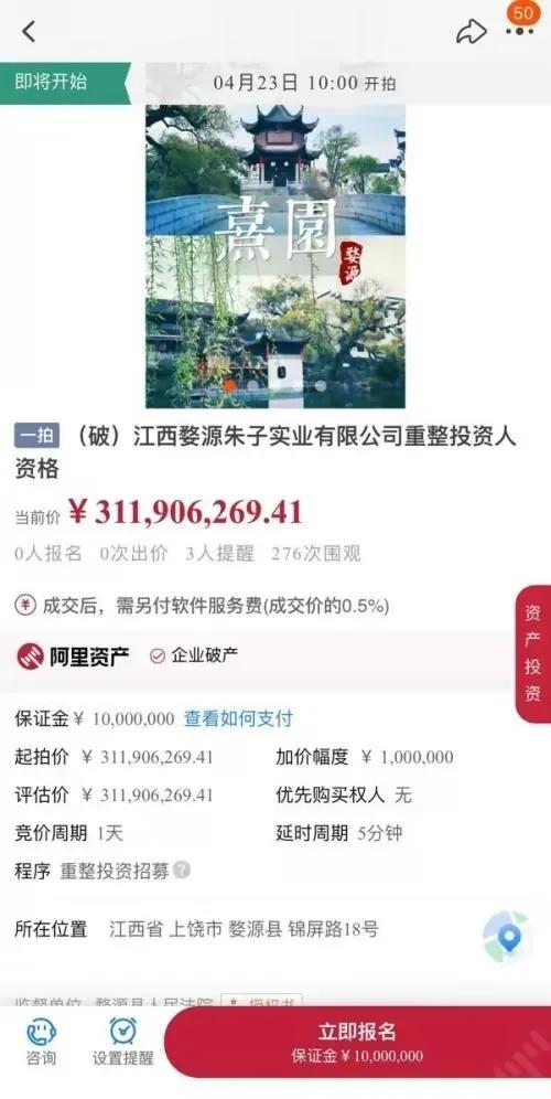 还是南宋名人朱熹的祖宅,在淘宝直播间起拍价3.1亿!加价一次至少是100万一次。厉害了!