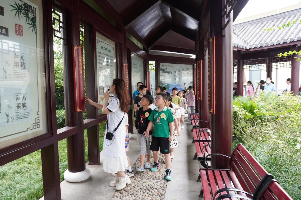 (图为王海燕带领暑期班的小朋友们参观医院的中医文化长廊)