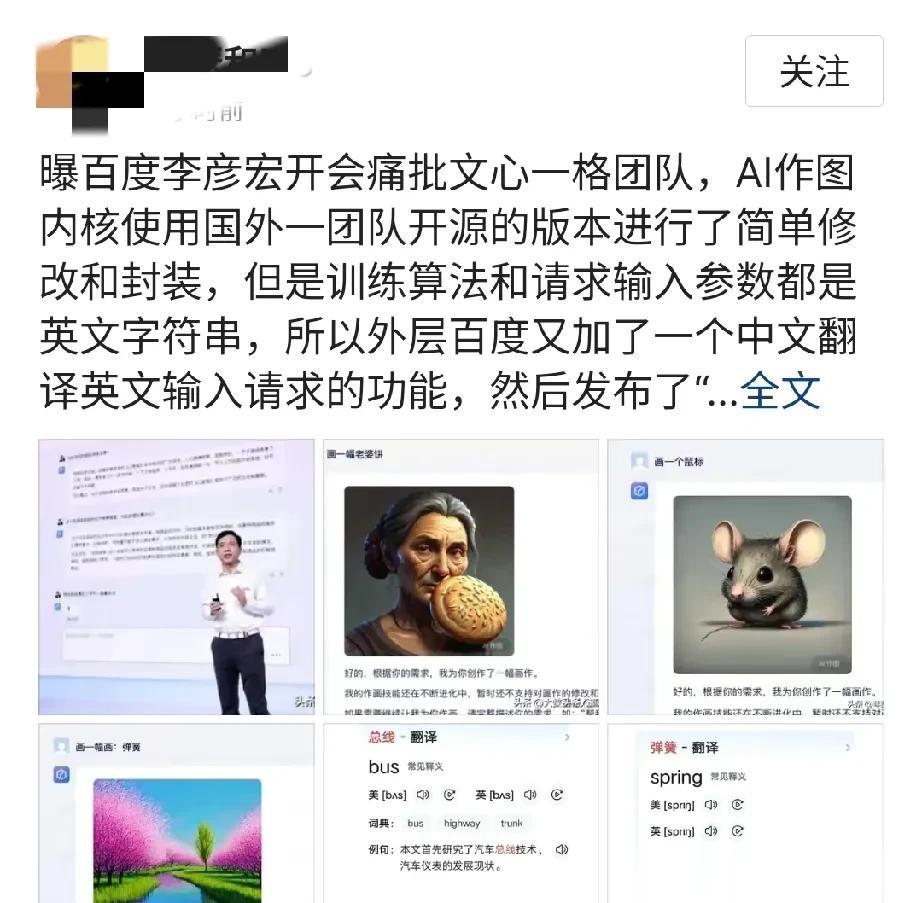 为什么这么多人突然都在说文心一言是百度的“套壳”式创新? 我记得3月16日,当李彦宏在文心一言的产品发布会上滔滔不绝时,百度股价一度跌近10%,当日收盘价仍跌超6%,这与当天的发布会并没有取得预期效果有关。但两天后的交易日又出现了百度股价大涨,这可能与之后更多人的初体验有关,算是一次口碑逆转。 但随着更多人更长时间的加入体验,最近发现很多人又有了新看法,认为百度文心一言只是个“套壳”,而且他们给出的理由也大体相同——基本都说内核是别人的。 对于近日网上的这些反应,李彦宏表示文心一言是典型的需要靠反馈才能不断提升的产品,而且当时市场也有强烈的需求,并希望这个产品尽早发布。因此,产品本身确有不完美的地方,仍需要不断改进并提升。 我觉得作为百度创始人,百度董事长兼首席执行官的说法几乎是“完美”的,因为有市场需求,所以百度作为互联网大厂第一个也是唯一一个能提供此类产品的,这已经是不易了,至于用户体验谈及的那些问题都不是问题,只是还需要时间慢慢解决。 从商业的角度来看,百度急需推出此类产品以满足国内企业和用户的需要,按他所说自百度宣布将推出该产品后,就已经有几百家企业要求开放API接口了,这说明商用的需求不仅有,而且很迫切。那么,百度自然是不想错过的。