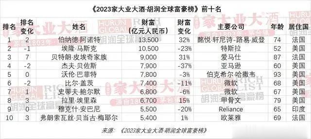 这几年,地产和互联网都由于众所周知的原因而表现不同于往日了,所以马化腾和黄峥、马云等互联网大佬们的身价已经不能与农夫山泉的钟老板相媲美了,纷纷出现不同程度的下降。 但从胡润《2023年全球富豪榜》的数据来看,超过10亿美金以上的企业家,中美两国拥有的数量合计就占到了全球53%。中国虽然减少了164位,仍以969位十亿美金企业家领跑全球;美国第二,有691位,减少25位;印度以187人排名第三,减少28人;德国取代英国,以144人排名第四。 不过,世界前十名的大富豪里没有中国的企业家,其中6位来自美国,3位来自法国,1位来自印度(也是亚洲首富)。