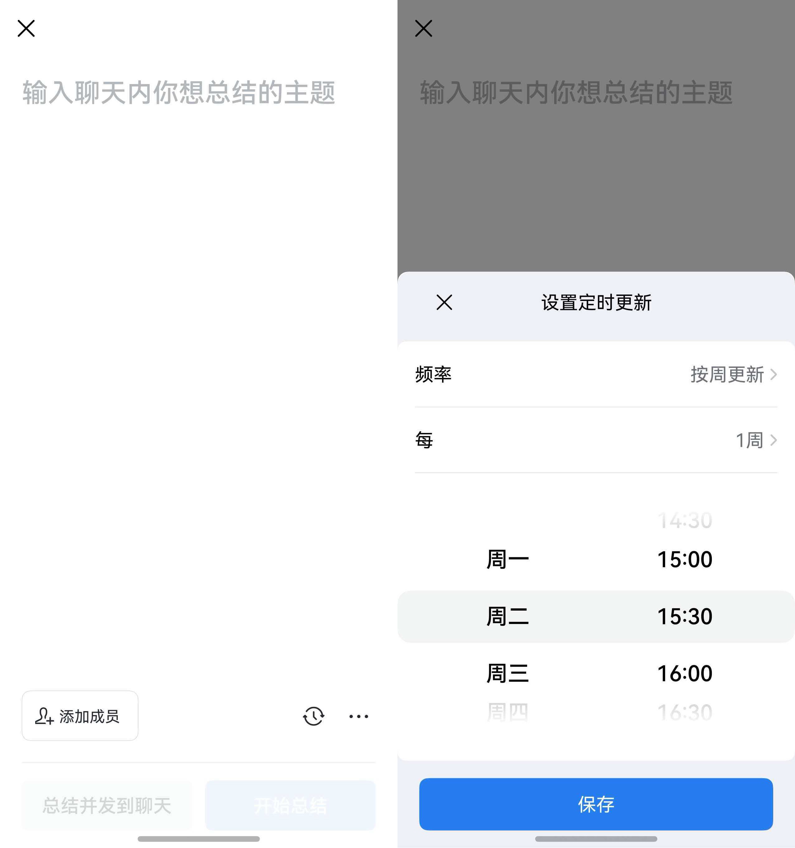 鸿蒙版企业微信内置的AI功能,这次也有新升级,比如工作台里的“智能机器人”升级后,智能总结功能更好用了,添加成员、设置定时更新快速搞定~