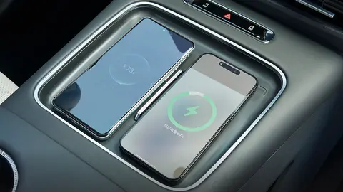 其他配置方面,13L 容量的冷暖冰箱可实现 5℃冷藏、50℃加热,长途出行时方便存放饮料、辅食等物品;22 扬声器音响系统播放音质尚可,播放舒缓音乐时环绕感较强,主驾头枕扬声器可单独播放导航语音,避免对后排乘客造成干扰;前后排各配备两个 50W 无线充电板,实测充电速度较快,以支持无线快充的手机为例,从 30% 电量充至 80% 仅需 25 分钟,且充电过程中未出现明显发烫现象;第三排新增 220V 电源接口,方便为笔记本电脑、露营设备等供电。