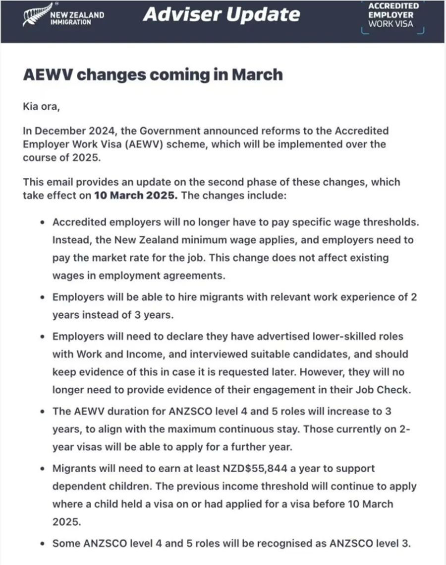 新西兰移民局在2025年3月10日后,又对AEWV进行了一次革新。