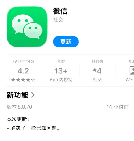 iOS 用户们,现在就可前往 App Store 中升级新版微信了。