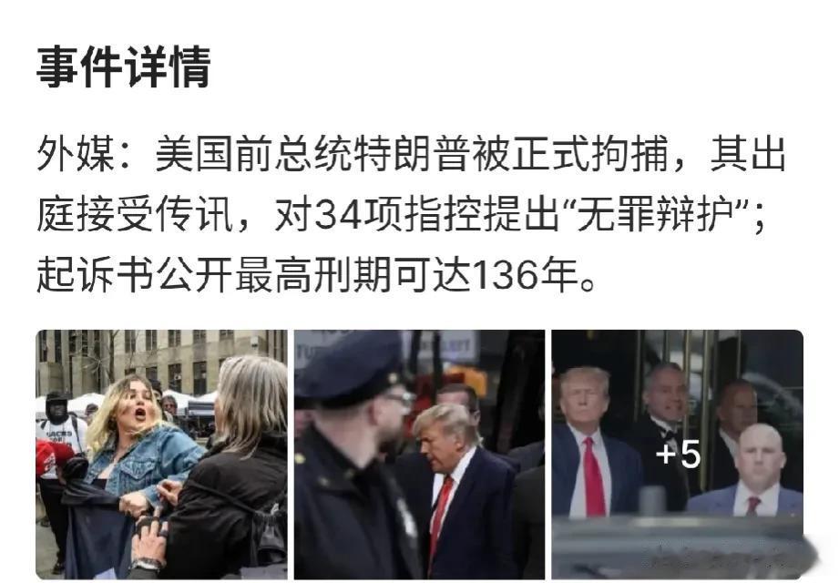 不管最后是不是136年的刑期,其实这些都不重要,关键是他已经成为美国历史上第一位受刑事罪名指控的前总统!这本身就是一道靓丽的风景线,也是美国社会可能进一步走向撕裂的开始? 据《纽约时报》与哥伦比亚广播公司综合报道,特朗普所涉及的情节较为严重的罪名可能是伪造商业记录与违反选举法。但即使被判,那所获刑期也可能远远低于这个136年的。 以前,我们都知道韩国比较容易发生这样的事,曾经有人对此形容称“韩国的总统是一个高危职业”,听上去有些夸张,但只要看一看过去的这些年里,在韩国的几位前总统身上所发生的事也就不足为奇了,几乎每一位卸任后都要出事,监狱的大门永远为他们敞开着,进进出出的举不胜举。 然而,谁能想到这种事在今天的美国也上演了呢?因为美国一向自诩是美国的政治多么开明多么民主,更声称自己的制度是最好的,可现在呢,他们还敢说自己的政治一尘不染吗?恐怕都成为一个笑话了。 当然啦!美国的内政我们不说什么,他们怎么干是他们自己的事,他们这样内斗下去也好,省得他们四处搞乱子,只要内部的问题处理不明白,也就没了闲情逸致去外面掀风浪!因此,从这个角度来说,他们现在斗的不可开交,未必对其他地方不是一件好事呢! 据报道称,下一次他要出庭的时间是12月4日,由此可见这个案子一定是漫长的,这可能会直接影响到明年的美国大选。如果他明年继续出来参选,而且还有幸当选的话,那恐怕届时才有好戏看呢?毕竟美国总统选举并没有规定有罪的人不能选,只是说年满36岁且在美国生活15年以上的美国人即可。 既然他们已经内斗不止,那最有趣的就是他一旦再次当选,肯定又会向民主党进行发难,一轮又一轮的,美国就算是想不衰退都难了!因为,他们各自身后其实说到底还是不同的资本在斗,也可以说是各自代表着集团的不同利益,既然水火不容就要见个分晓,严重的话可能我们会看到又一次的美国内战或分裂? 头条热榜