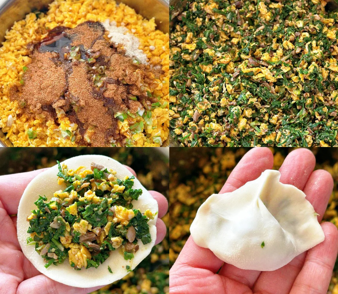 ✅ 亮点:我偏爱用这口素净鲜香迎接春天。荠菜是田野的馈赠,口感最是水灵;干鹿茸菌泡发后吸足汤汁,与炒得嫩滑的蛋碎、葱末拌匀。薄皮咬开,荠菜的野、菌菇的醇、鸡蛋的润在口中交织,既平衡了植物蛋白与膳食纤维,又满是时令的清新。