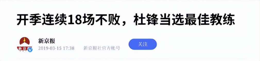 新京报《开季连续18场不败,杜峰当选最佳教练》