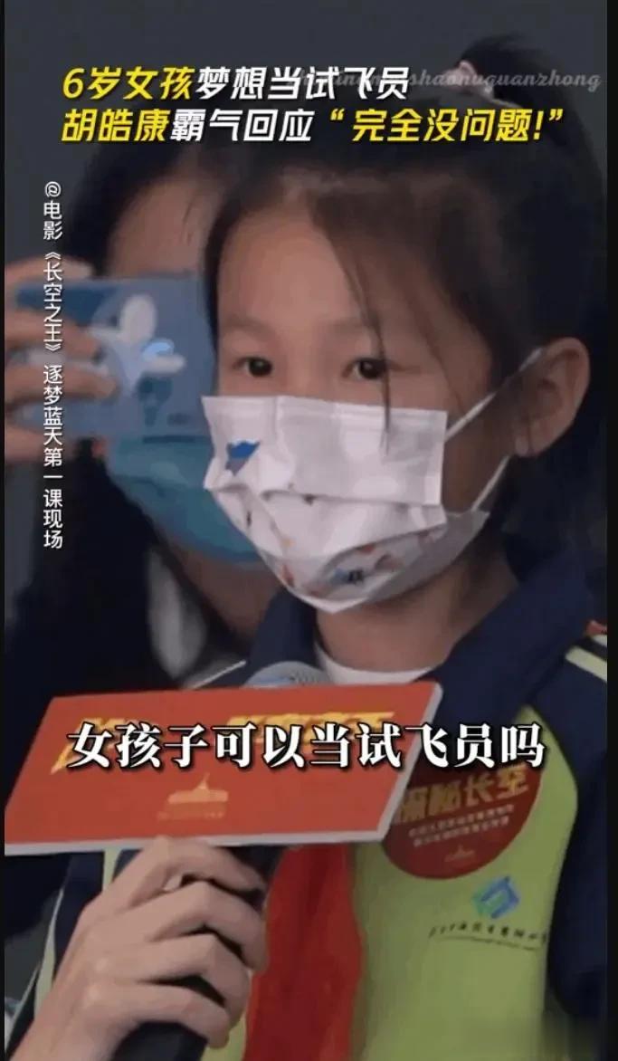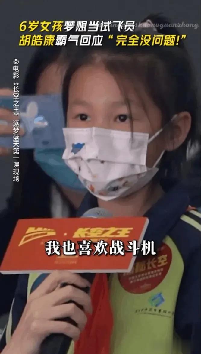 在电影《长空之王》逐梦蓝天第一课现场,6岁女孩梦想当飞行员提问康康:“女孩子也可以当飞行员吗?”面对女孩真诚的发问,15岁的胡皓康回道:“完全没有问题,你可以勇敢的去追逐你的梦想。” 原来,《长空之王》可以是一代代设计师、工程师、空军试飞员等“逐梦人”的前赴后继,是一代代长空之王们的热血奉献。 也可以是青少年航空梦启蒙作,通过大银幕上试飞员的热血经历,以及震撼亮相的国之重器,为孩子们的航空梦插上翅膀,让他们的梦想从这里起航。 6岁的小孩在现场问出这样的问题,也足以说明《长空之王》对孩子的影响,或许在未来某一天,他们也会成为新一代的航空人,接力守护祖国的蓝天。 这部电影在4月28日就上映了,届时我们可以带着孩子去感受一下搏击长空的魅力,去了解试飞员这一平凡而伟大的群体,感受大国重器的磅礴力量,为祖国的强大而自豪。