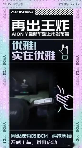 余承东“重新定义1000万内最豪华SUV标准”真是超乎想象? 在近日的发布会上,余承东先是回应了王传福关于“自动驾驶都是忽悠”的说法,他说我觉得(他这样说)可能只有两个原因,要么是他对这个行业不了解;或者是故意这样说的,他这方面能力还没做好,故意来打击下这个行业。 如果说他的回应还算是他一如既往地风格的体现。那么,接下来的话就有些令人吃惊!在谈及将要发布的新车时,他说“我的M9上市,将重新定义1000万内最豪华SUV标准,500万以内的不是我们的目标,我们要重新定义座舱的空间,我们要重新定义移动的家,重新定义移动的办公室,重新定义移动的卧室,冰箱沙发彩电都是小康水平,这些都不是豪华标准,我们满配10个屏可供你们选择。” 这是不是“超出想象”暂且不说,但他那番有关“重新定义最豪华SUV的标准”确实有点超出想象了,至少在价格来说就超出了不少年轻人的想象! 不过 又给了年轻人更多的想象空间和体验!3月7日,埃安副总肖勇化身“埃安头号超级主播”,以一场汽车界超A带货SHOW,为年轻人带来了一款11万级超A座驾——AION Y Younger,并将其亲切地称为YY。 AION Y Younger的上市,开创油电同价第一车,深入A级市场核心腹地,成为了纯电普及的一个重要里程碑。 追求动感、时尚的年轻人,喜欢将酷飒与优雅进行到底。为此,YY为他们配备了颇具赛博朋克风格的IBCM无感启动“黑科技”,靠近车门自动解锁,上车即亮屏。 更有年轻人喜欢的超大空间,2750mm的超长轴距,令YY拥有超越同级的空间表现能力,更有同价位最长430km续航,搭载荣膺央视首个电池科技大奖的弹匣电池,对同价位车型形成“降维打击”之势!值得一提的是,AION Y系列2月上险量13730台,杀入全品类SUV上险量总榜TOP 5 !