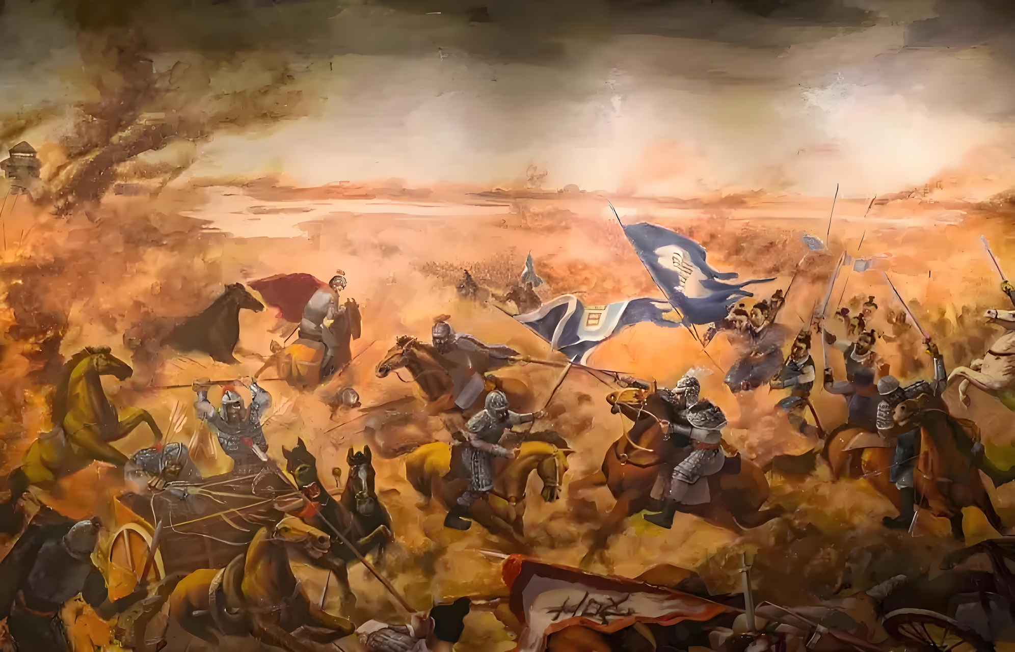 三、气象武器:被天气改写的战争剧本1. 沙尘暴的致命助攻《三国志》载:“曹公夜袭乌巢,会大风起。”北京师范大学古气候团队通过冰芯数据复原,证实当晚出现瞬时风力8级的沙尘暴。这种天气在黄河南岸秋季发生概率不足5%,却让曹军得以隐匿行踪。