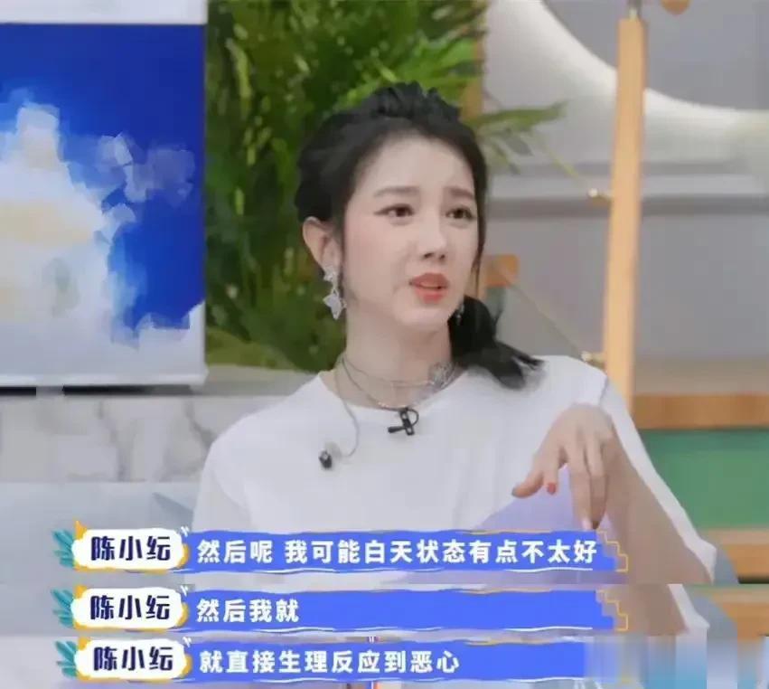 节目中,陈小纭吐槽:“和一男演员刚见面的第一场戏就是吻戏,又是半夜,我可能白天状态有点不太好,然后我就生理反应到恶心,直接吐了!” 面对大家的猜测,陈小纭保持沉默,不过她也说:“我真的觉得挺对不起他的。”这时,也有网友开始心疼这个男演员了。 说实话,她说这种话有点不负责任,节目播出后,人家男演员该怎么想。 不过最近,她在电视剧《薄冰》中表现不俗,在这部电视剧里面,陈小纭饰演的吴若男,圈了很多粉。 不同于以往的角色设定,这里面的她很有脑子,她饰演的吴若男是将军的私生女,喜欢撒娇卖萌,一言一行,一颦一笑,皆是风情万种! 在第21集中,陈小纭饰演的角色吴若男被一个日·本人宫本威胁,脱光了所有衣服。 在脱衣的过程中,吴若男眼眶里的眼泪不停地打转,却始终没有落下。 这一脱,让观众们看到了到了一个真实、脆弱的吴若男。 吴若男的坚毅,委屈,痛苦,被陈小纭演绎得淋漓尽致,让人心痛不已。 许多观众表示,这一场景仿佛点燃了自己内心的情绪,带给了他们强烈的触动和共鸣。 不得不说,这部剧真的很良心,演员敬业、演技到位,给人的惊喜也是连续不断,尤其是董洁,真的出乎意料。