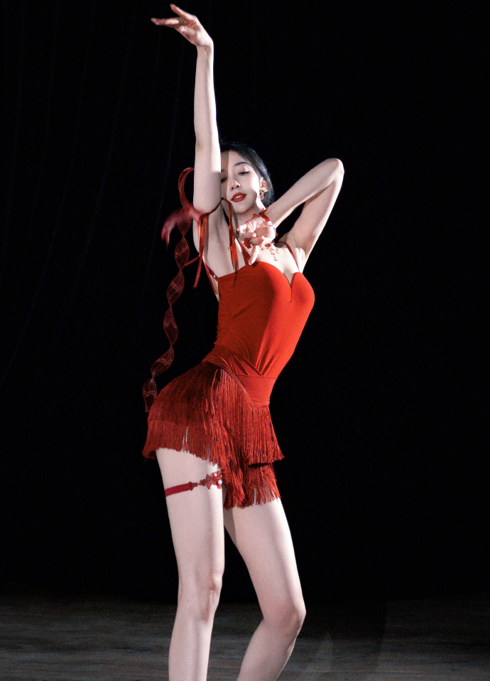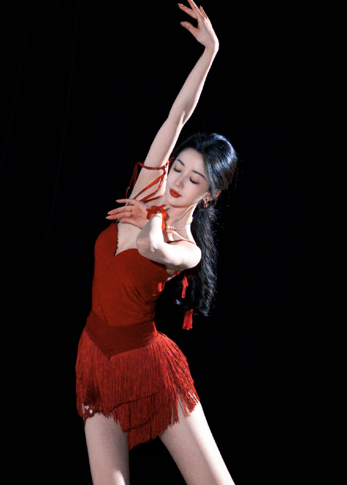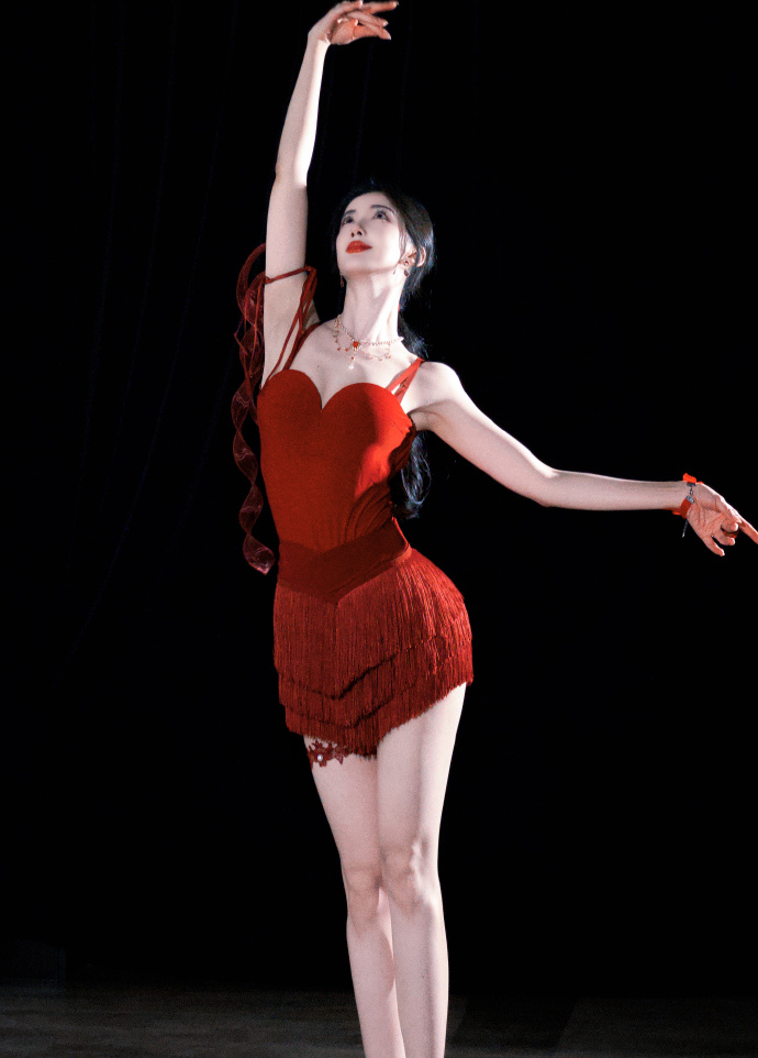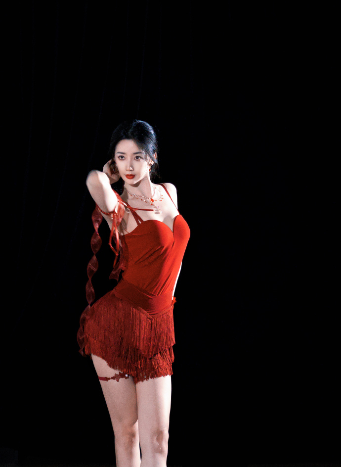 演员陈欣予红色吊带短裙穿搭写真,妖娆性感至极